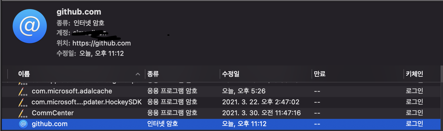 맥에서 제공하는 어플리케이션을 이용하여 계정과 비밀번호를 설정할 수 있었다.