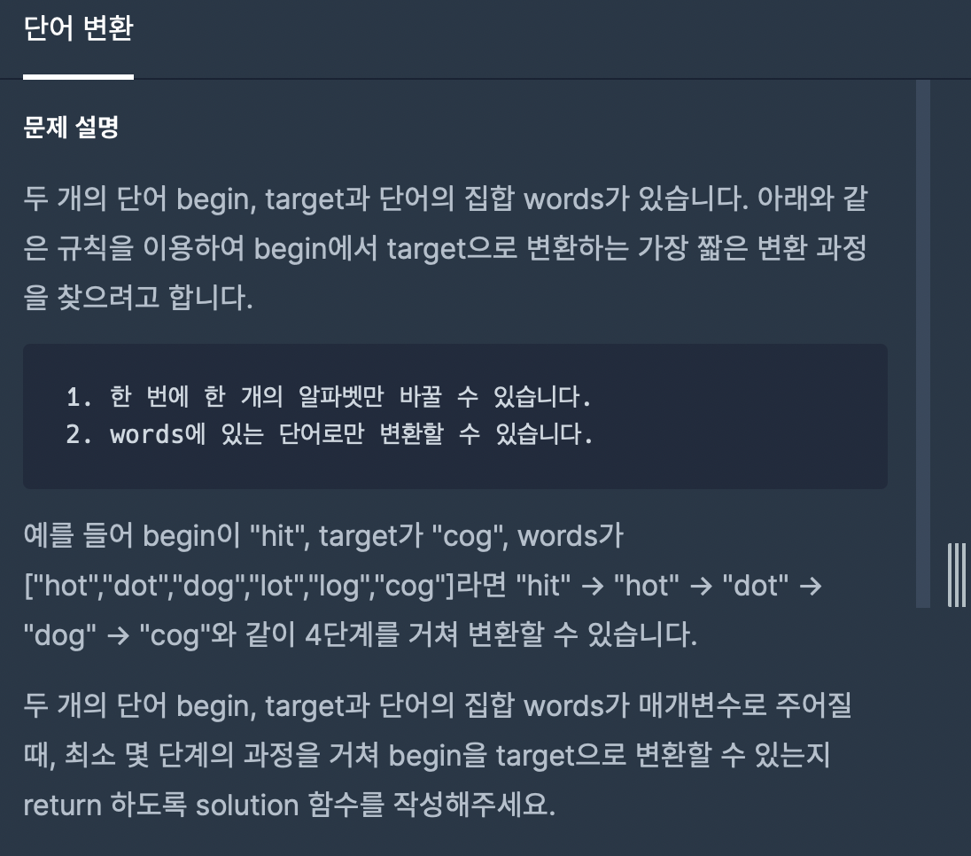 int solution(string begin, string target, vector<string> words) {