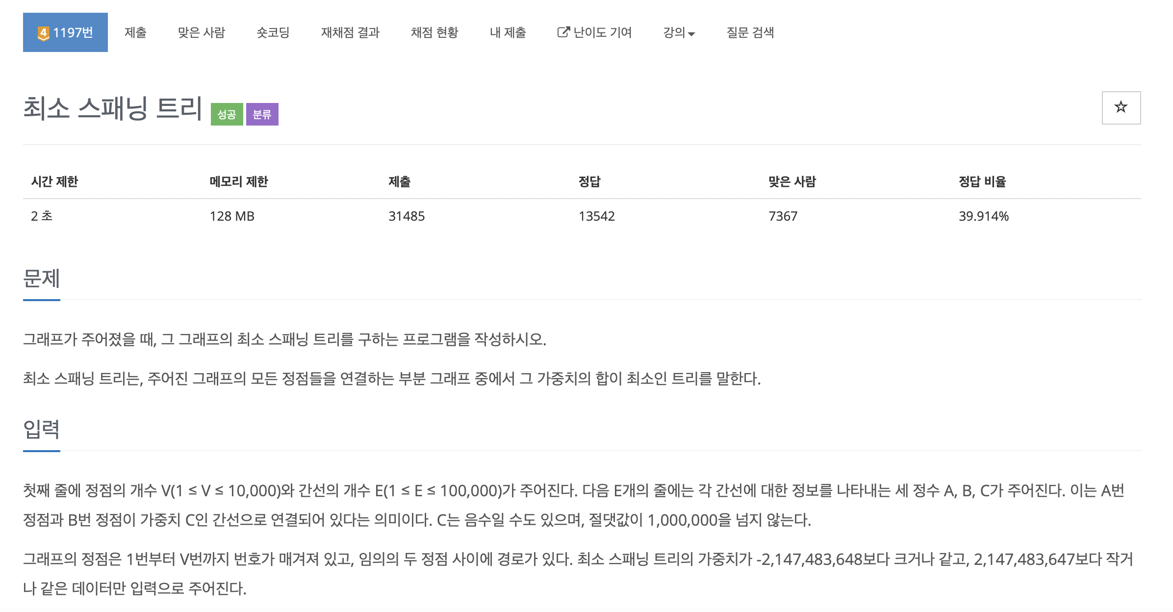 MST를 찾는 알고리즘 중 union-find를 이용하여 O(E*logE)에 찾을 수 있는 Kruskal algorithm을 이용하였다.